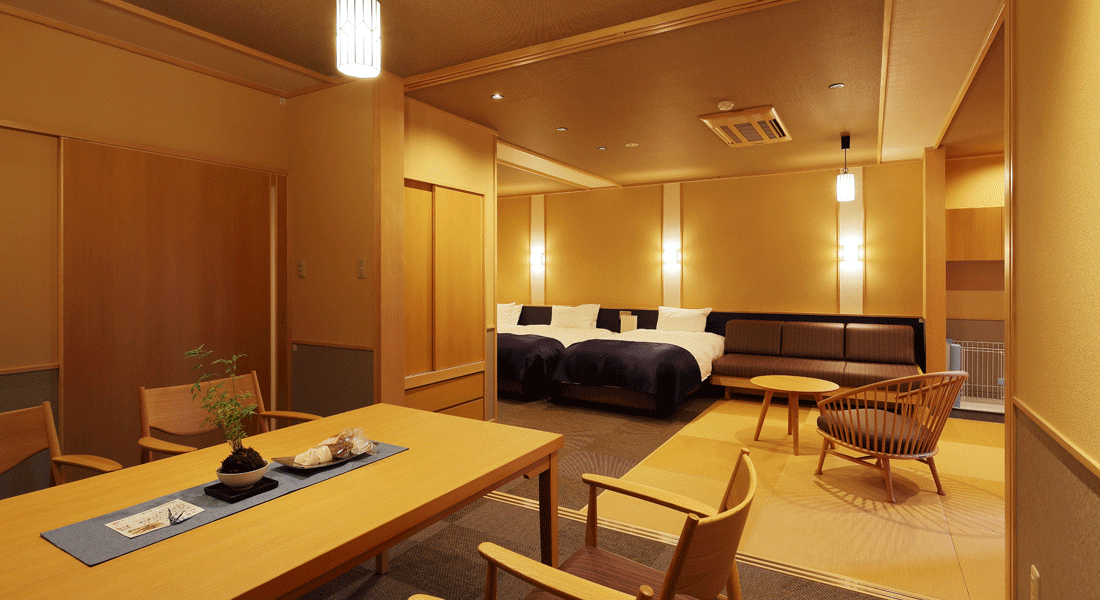 琵琶湖畔の温泉宿、暖灯館きくのや様の客室リニューアルです。3部屋を、ペットと一緒に泊まれる露付特別客室2室へと改修いたしました。 1部屋は12.5畳の和室とゆったり寛げるツインベッドの寝室。もう1部屋はダイニングでゆったりお食事をすることができ、広いリビングを有するラグジュアリールーム。 これまでのきくのや様の特徴である落ち着いた和の雰囲気を踏襲しつつも、わんちゃんと一緒に安心して寛げるよう、ふき取り可能な強い素材を用いて明るく清潔感のある設えといたしました。 また露天風呂・デッキ・坪庭をつなげ一体的な半屋外スペースとすることで自然を取り込み、上階客室に比べ眺望の点で不利な1階にありながら、少しでも琵琶湖の豊かな水と音を感じられるような空間づくりをさせていただきました。
