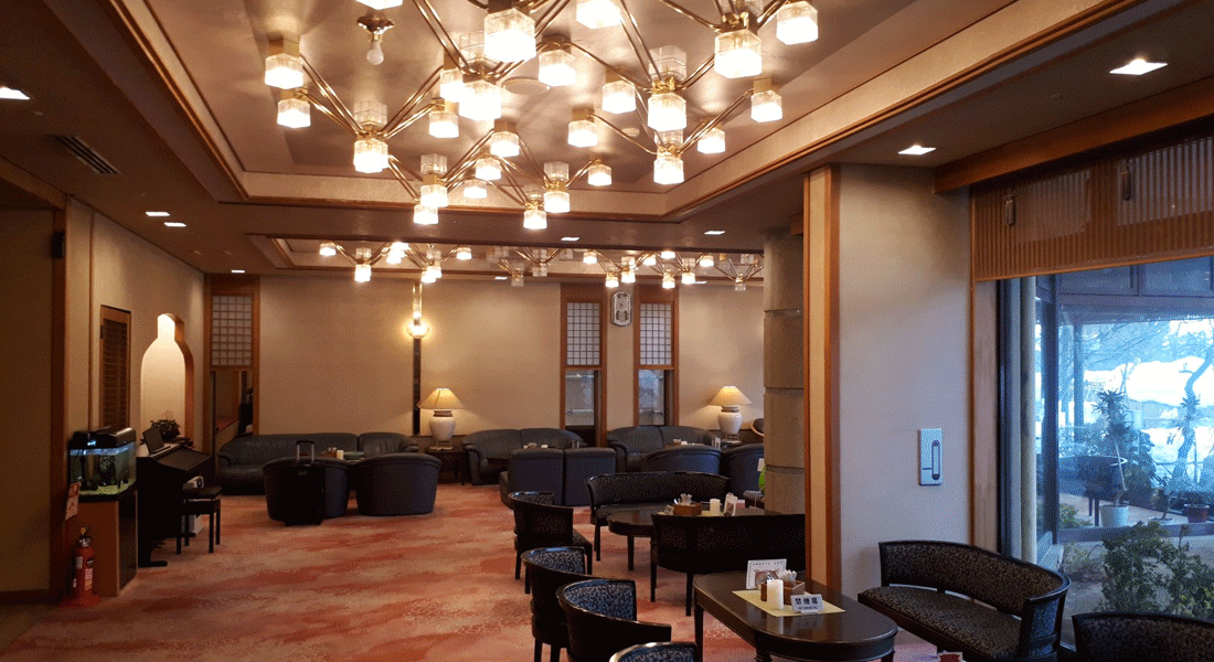 玄関ロビー、ラウンジを中心に1階部分のイメージを変えたいと依頼されました。また、県央地区は燕市をはじめ様々な工場があり、洗練された職人さんの技術を広く伝え地場産業のショールームをとしての機能を持たせたいという「匠プロジェクト」の思いをお聞きしました。 基本的に床はフローリングとタイル貼りに模様替えを行い、照明は雰囲気のある間接照明とダウンライトに変更しました。 玄関を抜けた正面のフロントバックには地元の職人さんにご協力いただいた銅板と組子を組み合わせたアートを設け、お客様をお出迎えします。 一段下がった場所にあるラウンジにはオーディオ設備が備わっており、様々な色、形の椅子にお客様が選んで座れる楽しい空間となっています。 また、ショーケースには美術品にも劣らない品々を展示しており、お客様の目を楽しませています。